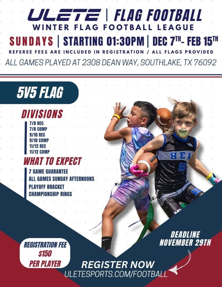 The ULETE Winter Flag Football League 2025-26 will run from December 7th – February 15th.
